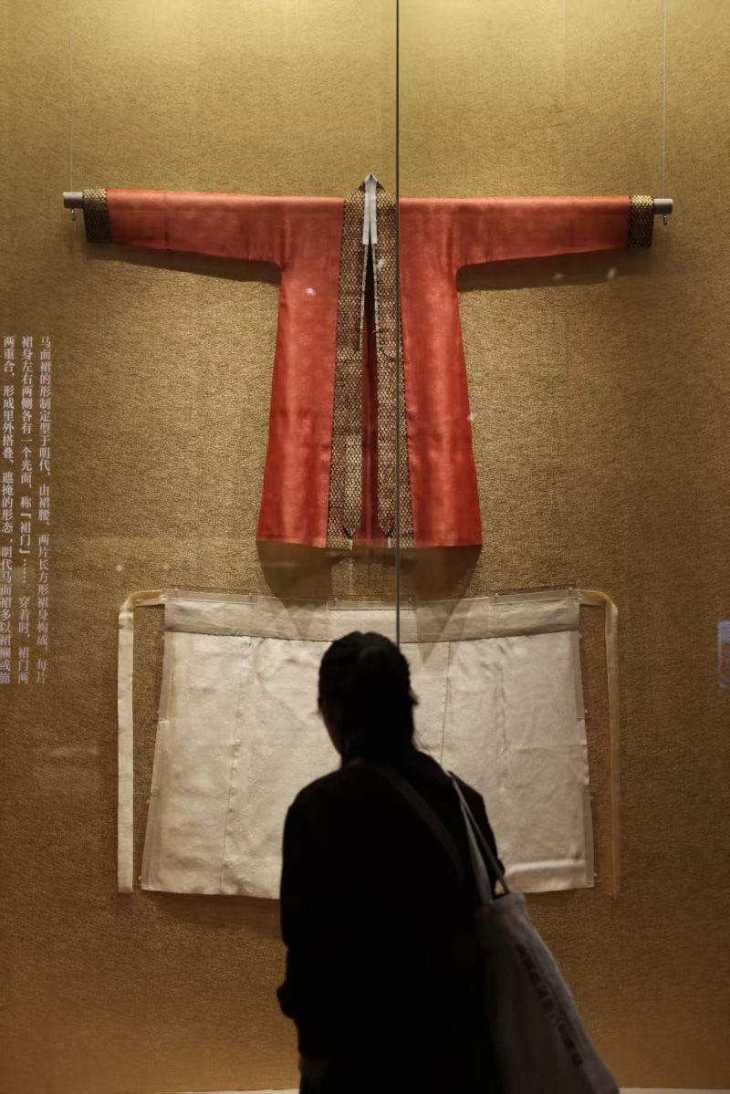 10月11日,“裙裳華彩:馬面裙的古韻今風(fēng)”展覽開幕式在清華大學(xué)藝術(shù)博物館舉行。馬面裙是中國(guó)傳統(tǒng)服飾中的經(jīng)典裙裝,本展依據(jù)傳統(tǒng)馬面裙的美學(xué)演變?yōu)榫€索,序篇呈現(xiàn)馬面裙的形制起源,后以馬面裙的定形與發(fā)展為題,共分為三個(gè)單元展出66組件展品。